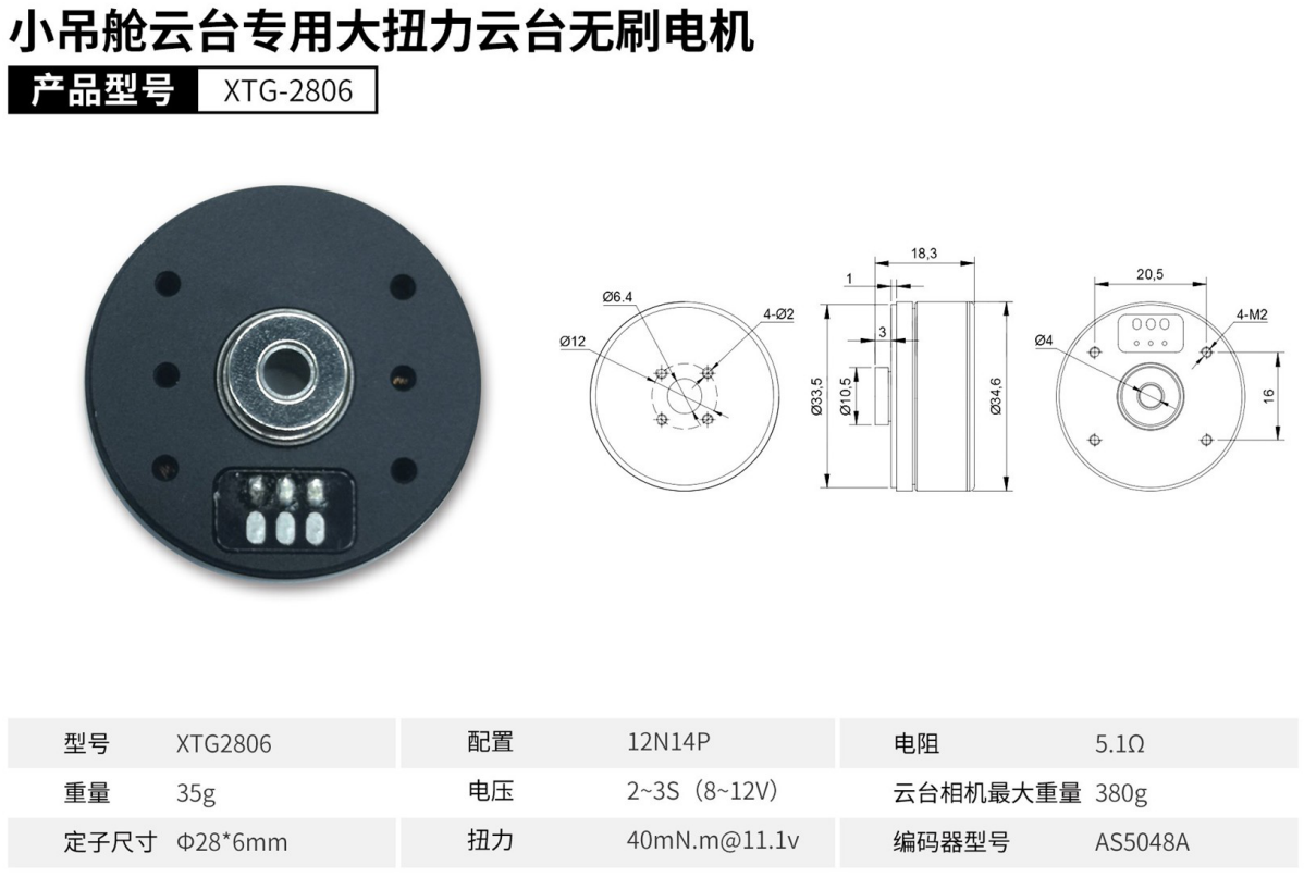 產品名稱:XTG-2806 小吊艙云臺專用大扭力云臺無刷電機