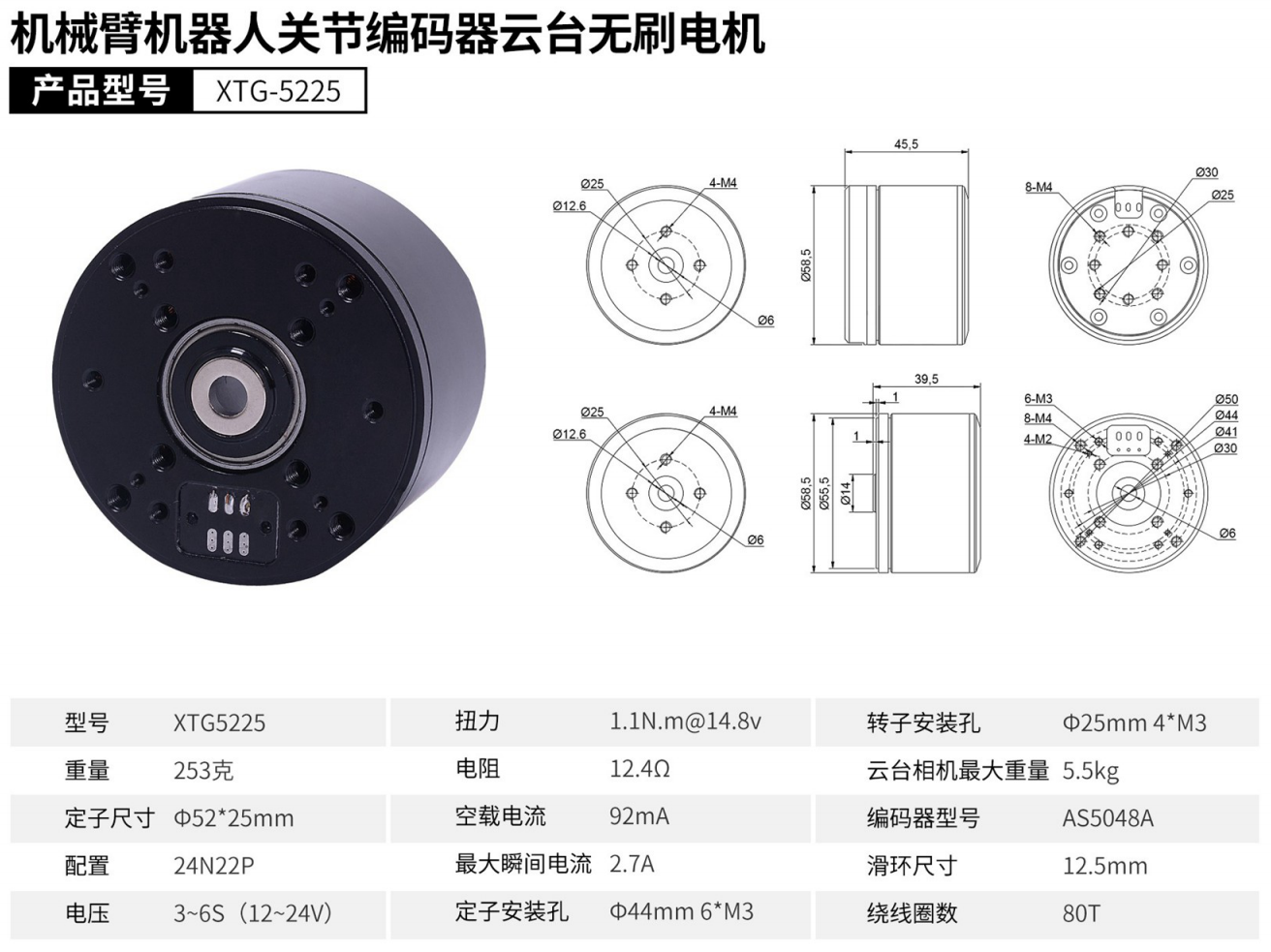 XTG-5225 機械臂機器人關(guān)節(jié)編碼器云臺無刷電機