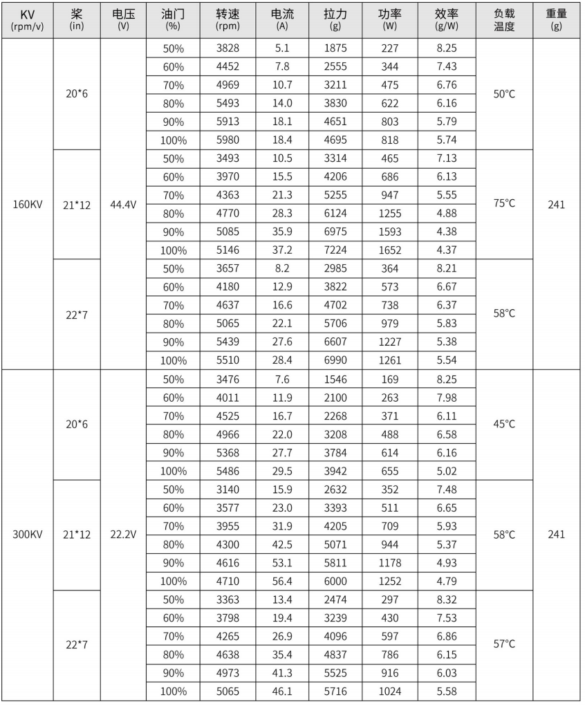 數(shù)據(jù)使用20*6的槳葉,44.4的電壓