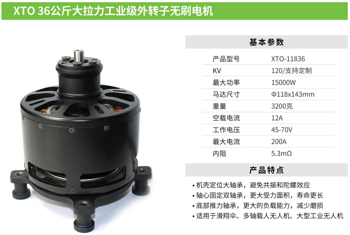 產(chǎn)品名稱:XTO-11836-120KV 36公斤大拉力工業(yè)級外轉(zhuǎn)子無刷電機
