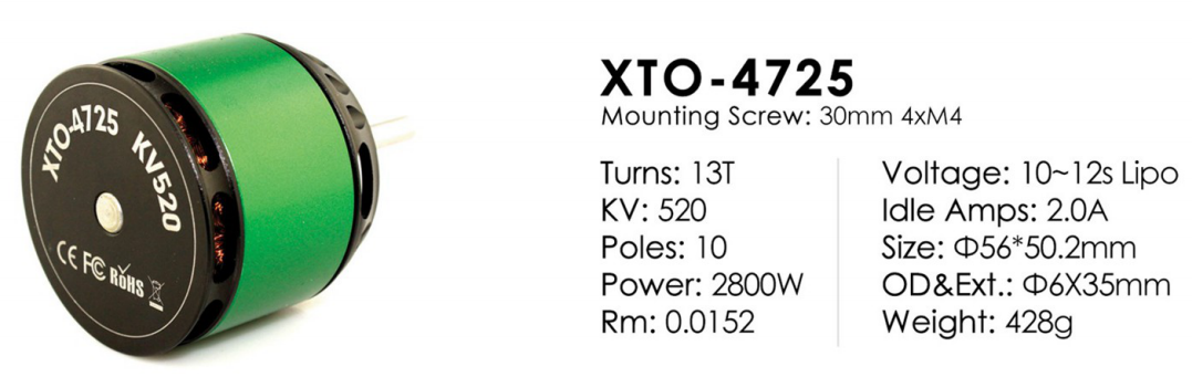 產品名稱:XTO-4725-520KV 大功率系列無刷電機
