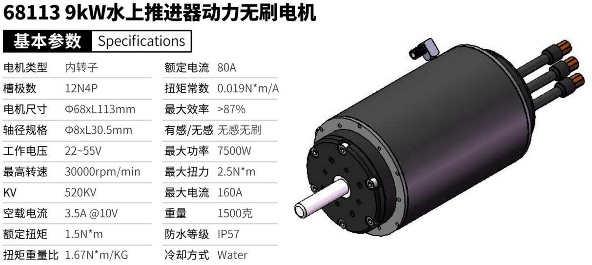 產品名稱:68113-520KV 9kW水上推進器動力無刷電機