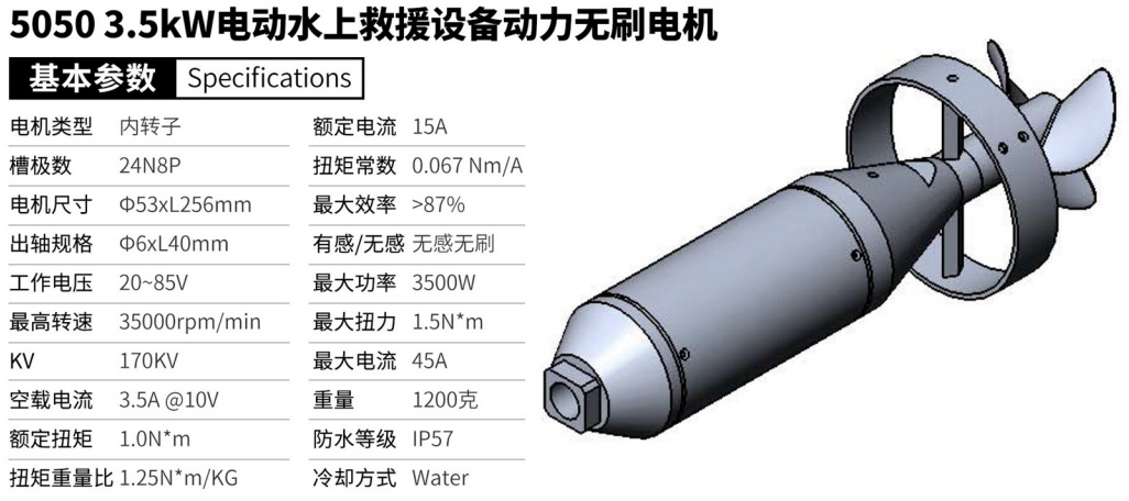 產品名稱:5050-170KV 3.5kW電動水上救援設備動力無刷電機