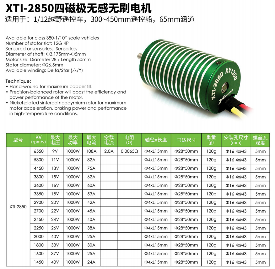 產(chǎn)品名稱:XTI-2850-3350KV 越野遙控車,遙控船,65mm涵道電機