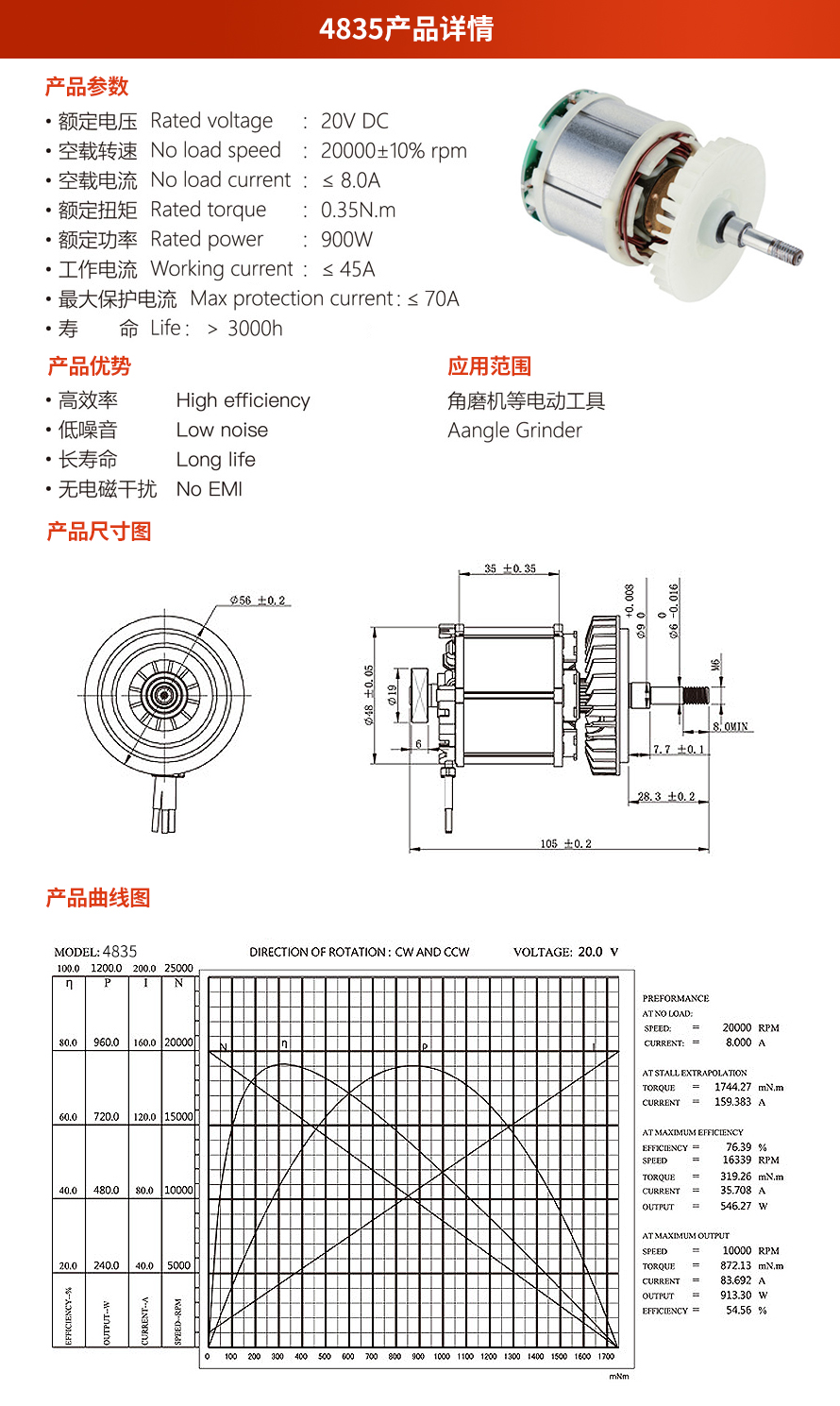 產品名稱:4835 鋰電角磨機 等電動工具無刷電機