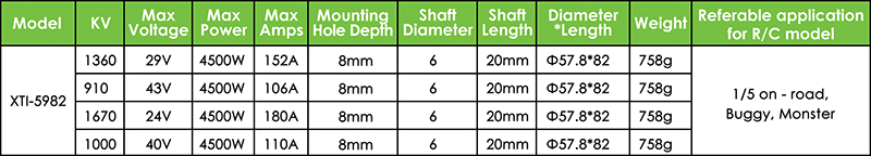產品名稱:XTI-5982-1670KV 汽車模型無刷電機