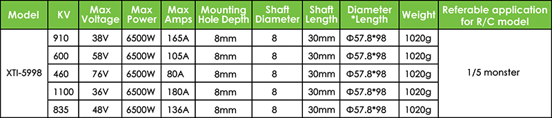 產品名稱:XTI-5998-600KV 汽車模型內轉子無刷電機