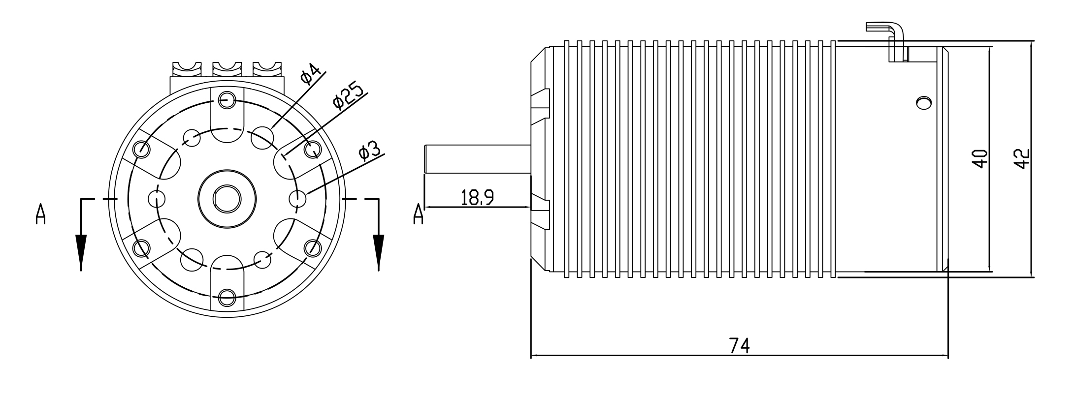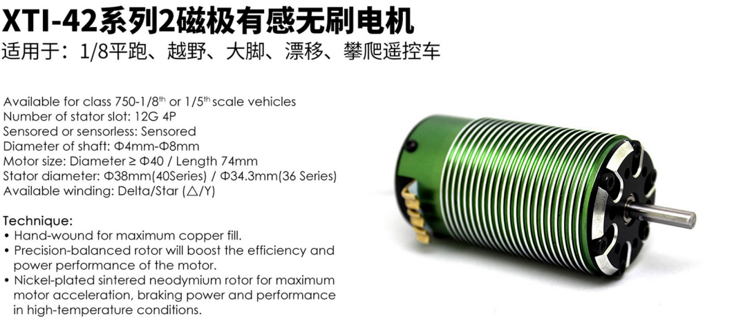 XT1-42系列2磁極有感無刷電機,適用于:1/8平跑、越野、大腳、漂移、攀爬遙控車