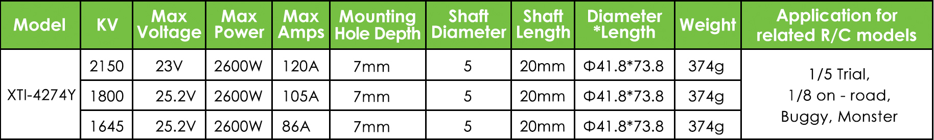 產品名稱:XTI-4274Y-1800KV 遙控車模2磁極有感無刷電機