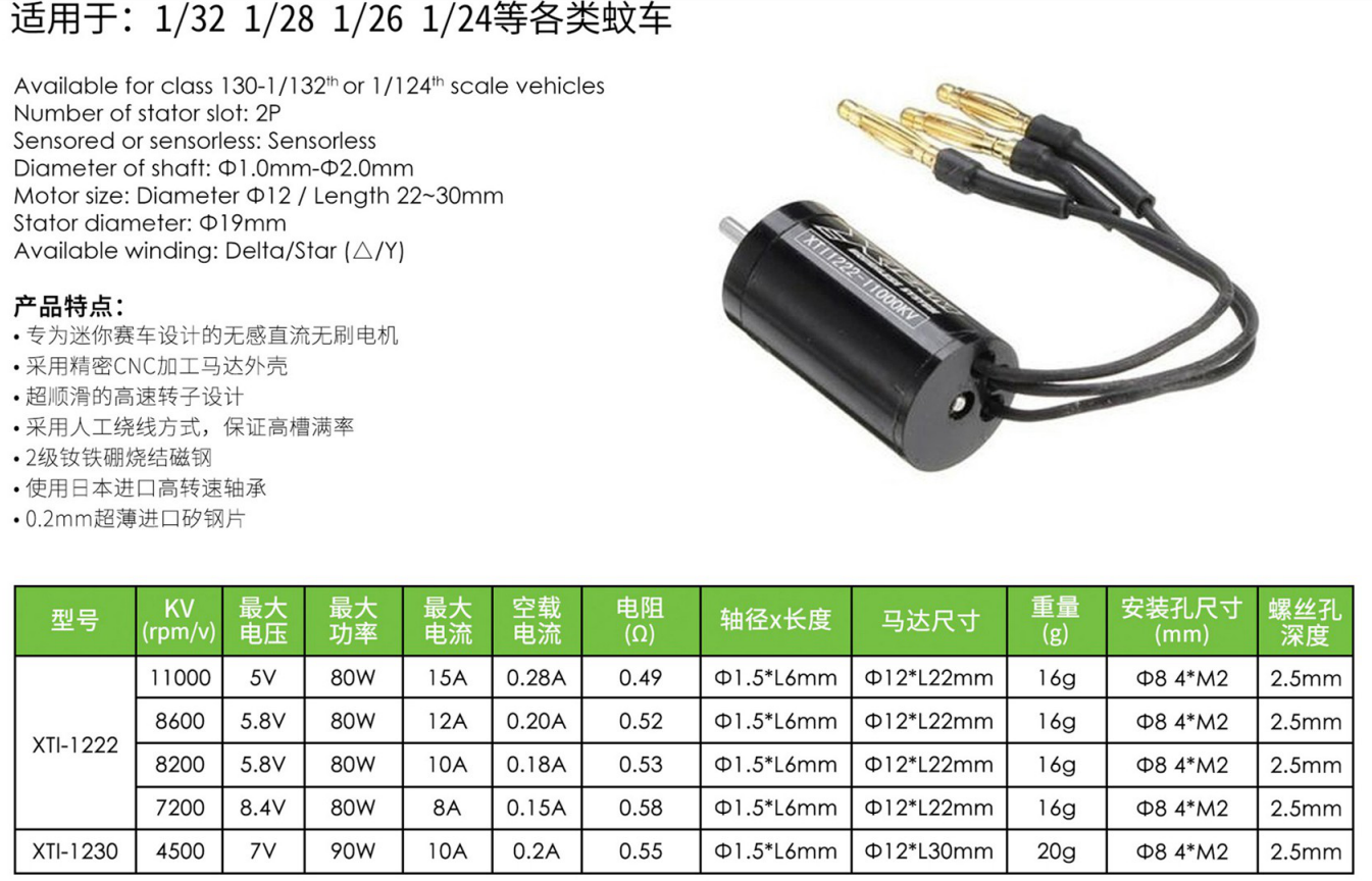 產品名稱:XTI-1222-11000KV 迷你賽車模型無刷電機